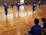 本日1・2校時に,1・6年生がなわとび大会の予行練習を行いました。1年生と6年生は,なわとび大会当日に一緒に行い,6年生が1年生の跳ぶ回数を数えます。本日は,ペアを確認して並び方や数え方の確認をしたり,6年生が教えてあげながら長縄とびの練習をしたりしました。