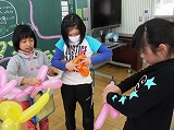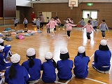次に1年生の教室で,「なかよし会」を行いました。1年生が進行を行い,いっしょにぬりえや昔遊びをしたり,ダンスを踊ったりして楽しく過ごすことができました。