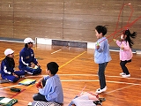 本日3校時,5年生と小野わかば幼稚園の年長組のみなさんとのなわとび交流会が行われました。5年生はあや跳びや二重とび,長縄の8の字跳びなどを発表し,幼稚園生からは驚きの声が上がりました。また,グループ活動では幼稚園生の跳んだ回数を数えてあげたり,跳び方のポイントを教えてあげたりしました。