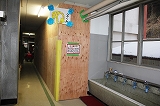 本日子どもたちが登校すると,東階段を覆っていた板が外され,通行ができるようになっていました。壁面も大変きれいになっていました。