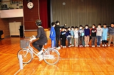 自転車部では,練習の様子を見学しました。先輩たちが板やはしごを渡ったり,ピンの間を上手に通ったりするたびに,驚きの声が上がっていました。