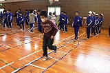 陸上部では,ラダーを使った練習を体験しました。先輩たちの間に入り,教えてもらったり,動きをまねたりしながら,熱心に取り組んでいました。