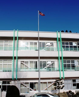 さっそく校旗を掲揚いたしました。青空の中に気持ち良くなびいていました。