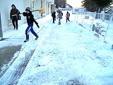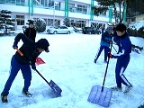 今朝、小野町にもたくさん雪が積もりました。5・6年生は,早く登校した人から進んで雪かきに取り組みました。下級生が通りやすいように正門から昇降口までの道を作ったり,学校に入ってくる車が通りやすいように舗装の上の雪をかいたりと,歩く人や通る人のことを考え,協力して作業をすることができました。