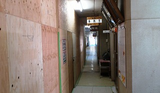 工事のため廊下が狭くなっていますが,子どもたちは安全に気をつけて廊下を通行しています。