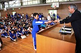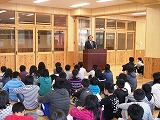 次に小野中学校の校長先生と生徒指導の先生より中学校での学習や学校生活についてのお話がありました。