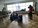 最後は部活動見学です。希望する部活動の班ごとに分かれて見学しました。顧問の先生や中学生の先輩方の説明を聞き,実際に体験をさせていただきました。