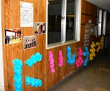 新小まつり実行委員会は,これまでスローガンやテーマソング・飾り付けについて話し合ったり,協力して準備をしたりしてきました。本日はお昼の放送で呼び掛けの練習を行ったり,校舎2階から体育館ギャラリーにつながる渡り廊下に実行委員手作りのプログラム紹介を作成・掲示したりしました。