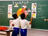 1年生は朝から算数のお勉強です。教室に入る時には,10になる足し算を唱えてから入ります。繰り上がりや繰り下がりの計算をスムーズに行うための基礎になる大切な学習です。