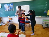 また,小野町の特産品「ちぢみほうれん草」は,ビニールハウスをわざと開けておいて冷たい空気を入れ,ホウレンソウを縮ませて作っているそうです。できあがったちぢみほうれん草は糖度が11度以上になり,ミカンなどと同じくらいの甘さになるというお話を聞き,子どもたちは大変驚いていました。