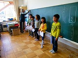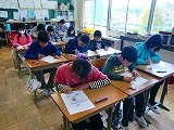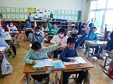 3年生は算数の学習です。1L(リットル)ますの図を使いながら,はしたの数を小数で表す学習を行っていました。集中して学習に取り組み,大変積極的に意見を発表していました。