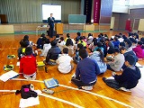 4年生は講師の先生をお呼びして,2・3校時に金融知力普及協会監修による「おこづかい教育出前教室」を行いました。講師の先生から,お金の大切さやいろいろな使われ方についてお話を聞いたり,お買いものゲームをしておこづかい帳を書く練習を行ったりしました。