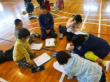 体育では野球型ゲームを行いました。チームで声を掛け合い,協力してゲームに取り組んでいました。