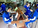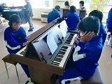 音楽では作曲の学習を行いました。作ったフレーズを友だちと聞き合い,真剣に取り組んでいました。