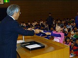 また,「小野町米の消費拡大ポスターコンクール」の表彰が行われました。本校の5年生が最優秀賞,4年生が優秀賞に選ばれ,町長さんより賞状が手渡されました。