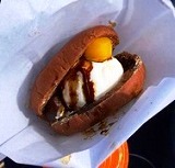 26日(日)には,本校6年生の考えた「おのまち小町アイスバーガーオリジナルレシピ」が実際に販売されました。6年生も販売のお手伝いを行いました。販売ブースは大変なにぎわいで長い行列ができていました。