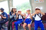 船引駅から児童館までは歩いて移動しました。1.5Km,約30分の道のりです。児童館が小高い山の中腹にあるため上り坂です。1年生も最後まで頑張りました。
