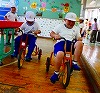 児童館を利用するのは今年度が初めてでしたが,屋内の遊具が充実しており,トランポリンやすべり台・三輪車など,好きな遊具を選んで,夢中で遊んでいました。