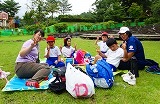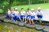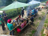 その後はふれあいの森に移動し,虫取りや綱渡り遊びをした後,みんなで「バーベキュー」を行いました。外で食べるお肉や野菜は格別で,どんどんおかわりをしていました。昼食後は「水でっぽう遊び」を行いました。毎年恒例で子ども達もとても楽しみにしており,大変盛り上がりました。