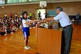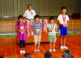 3つ目は,「小野町小学生水泳記録会・水泳大会」です。全校で86名が入賞しました。大変素晴らしいです。その中でも,「2年生女子25m自由形」,「2年生男子25m自由形」(2名),「6年生男子50m背泳ぎ」の3種目で,4名が新記録を出し,入賞者の代表として賞状と記念品を受け取りました。また,リレーでも5・6年男女の4種目で優勝,3種目で準優勝し,トロフィーを受け取りました。