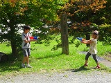 昼食の後は,みんなでシャボン玉で遊んだり,ドッヂビーで遊んだりしました。