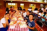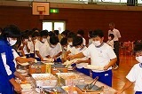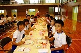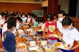 本日体育館にて,5年生が楽しみにしていた「バイキング給食」が行われました。