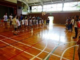 放課後の練習も雨天のため体育館で行いました。走る時の姿勢について全員で確認した後,ラダーやミニハードルを使って練習をしました。素早く・リズミカルに動くことを意識して練習に取り組みました。練習の終わりには全員で大きな輪になってあいさつを行いました。