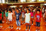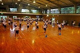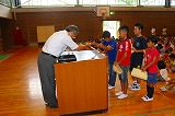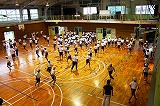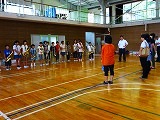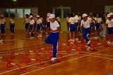 朝の練習は雨天のため体育館で行いました。まず始めに担当の先生方へあいさつをして,先生方からお話をいただきました。そのあとラダーやミニハードルを使った練習を行いました。初めて取り組む児童も,普段から行っている陸上部の児童の様子をよく見て,熱心に取り組みました。