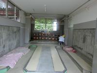 東西玄関の改修工事も進んでいます。これまでの下駄箱を撤去し、新しい下駄箱を取り付ける工事です。基礎となるコンクリートが施され、今後新しい新しい下駄箱の取り付け作業が行われます。2学期の始業式までには工事が終了し、新しい玄関が子どもたちを迎えてくれる予定です。工事関係者の皆さん、連日の猛暑の中ありがとうございます。