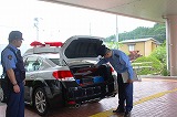 本日2~4校時に4年生が田村警察署小野分庁舎の見学学習に行きました。パトカーの中や警察官の方々が使う道具を見せていただいたり,実際に触らせていただいたりして,子どもたちは興味津々でした。庁舎の中では,各課の部屋や柔剣道場に入らせていただき,お仕事や訓練の様子についてお話をいただきました。