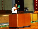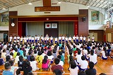 次に校長先生のお話がありました。サッカーにはレッドカード,イエローカードがありますが,小学生以下の大会に限っては「グリーンカード」があり,フェアプレーや頑張りを褒める役割があるそうです。ワールドカップの日本応援団の客席の清掃もグリーンカードにあたる素晴らしい行為だという紹介がありました。小野新町小学校の中でも,たくさんのグリーンカードが出るようになってほしいというお話がありました。