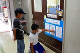事務室前の「情報コーナー」には学校の学習や生活にかかわることや,事務室の先生おすすめのすてきな写真や詩の紹介がされています。今回の詩の紹介は,自分で気に入ったものにシールが貼れるようになっており,たくさんの子どもたちが参加していました。