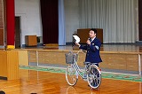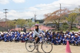 5・6年生の部は,4校時に行いました。特設自転車部の6年生が自転車の点検や安全な走行についてお手本を見せてくれました。信号機のない交差点も「止まれ」の標識を守って安全に渡っていました。