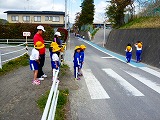 3校時には,1・2年生は学校周辺の道路で,安全に歩行する練習を行いました。交差点では左右を確認して,手を上げて安全に渡っていました。