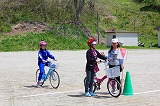 3~6年生は校庭で自転車の乗り方の練習を行いました。3・4年生の部は,3校時に行いました。自転車の点検やヘルメットの着用,自転車の走る場所や交差点の渡り方などについて,一人一人自転車に乗って練習しました。