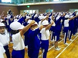 本日は3校時に運動会の全体練習が行われました。気持ちのよい青空の下,全校で入場行進やラジオ体操,開閉会式の練習を行いました。各学年で練習してきたことを生かして,元気よく,きちんと行動することができました。6年生の先導や進行も大変立派でした。