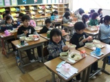 まず,授業参観に先立って,1年生の給食試食会が行われました。