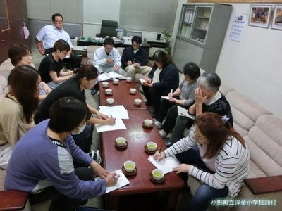 婦人3団体の代表の皆さんとPTA会長,副会長が集まって浮金スポーツフェスタの昼食準備について話し合いをしました。