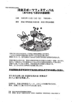 閉校記念事業として10月13日(日)に予定していた浮金スポーツフェスタは、延期とします。