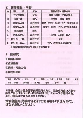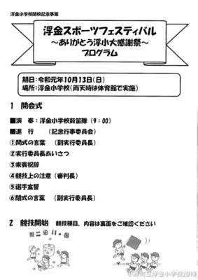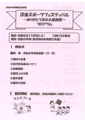 今週末に実施される浮金スポーツフェスティバルのプログラムです。