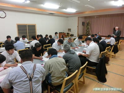 2019年11月7日 18時50分閉校記念誌編集委員会の皆さんが集まって、記念誌に使う写真やページ等の構成をしました。