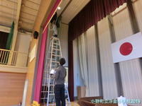 どん帳の開閉用の紐が経年劣化のため、今にも切れそうな状態でした。