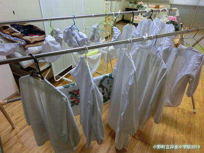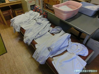 週ごとに家庭に持ち帰って洗濯していただいていますが、学期ごとに学校で洗濯し、点検です。