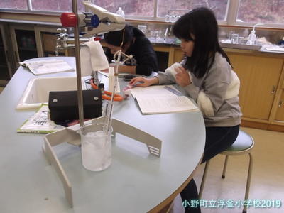 前回に続き水を冷やしたときの水のようすや温度の変化について実験をして確かめました。