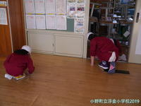 教室は、このあとワックスがけ(職員作業)があるので、水拭きをします。