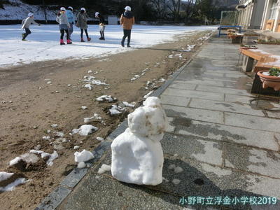 雪だるま?ライオンの雪像?石畳の端にちょこんといました。