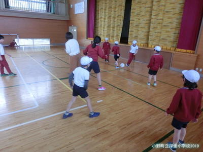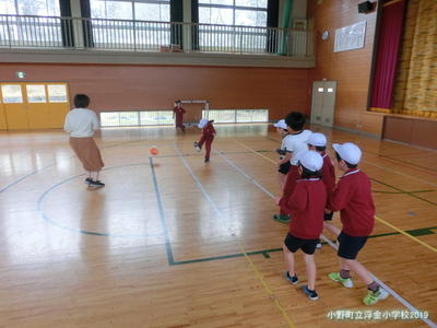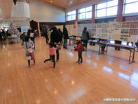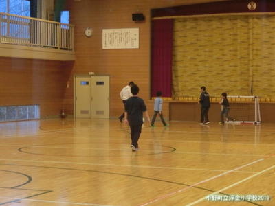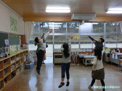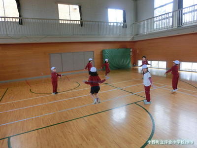体育館では、東側半分で1年生と3年生がなわとびを楽しんでいました。