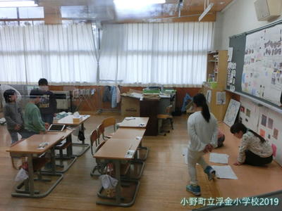 5・6年生が中心となって話し合いをしていたと思ったら、それぞれにカードに何やら書いています。