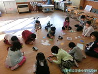 今日の浮っ子タイムは、通学班で集まって何やら活動中です。