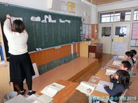 3年算数科「分数」では、複式解消補正担当と校長がTTで授業を行いました。